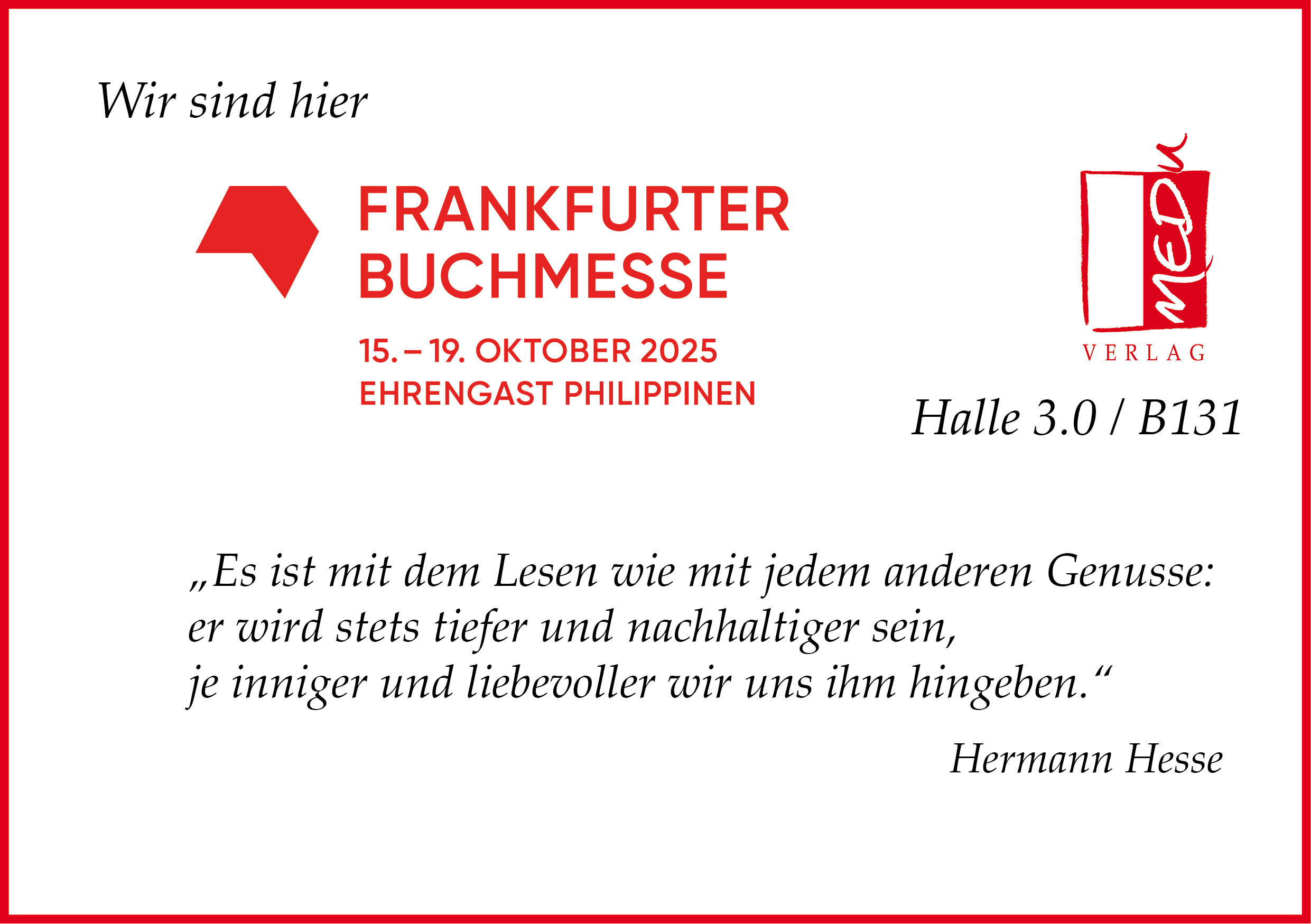 Eine Gelegenheit, die sich keiner entgehen lassen sollte. Wir vom MEDU-Team sind natürlich wie immer mit von der Partie. Entdecken Sie Neuerscheinungen des Verlages, treffen Sie auf Autoren und Autorinnen oder stöbern Sie einfach in einigen unserer ausgestellten Titel. Wir freuen uns auf zahlreiche Besucher an unserem Messestand und interessante Gespräche.