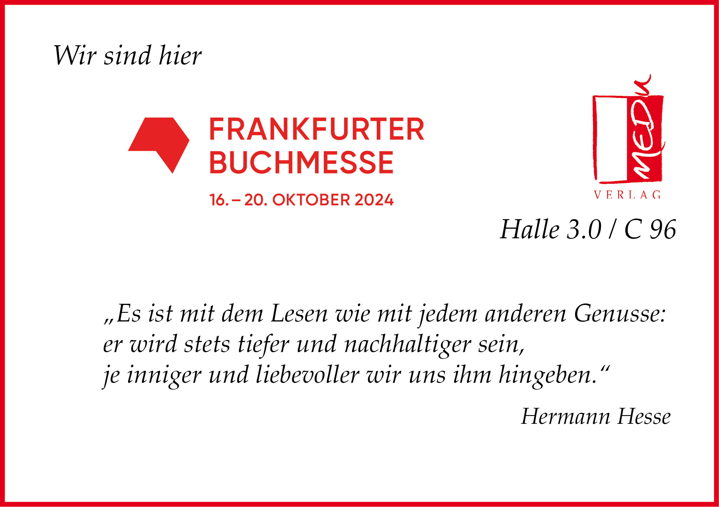 Eine Gelegenheit, die sich keiner entgehen lassen sollte. Wir vom MEDU-Team sind natürlich wie immer mit von der Partie. Entdecken Sie Neuerscheinungen des Verlages, treffen Sie auf Autoren und Autorinnen oder stöbern Sie einfach in einigen unserer ausgestellten Titel. Wir freuen uns auf zahlreiche Besucher an unserem Messestand und interessante Gespräche.